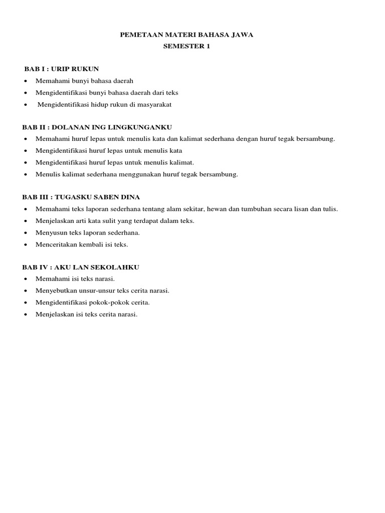 Pemetaan Materi Bahasa Jawa