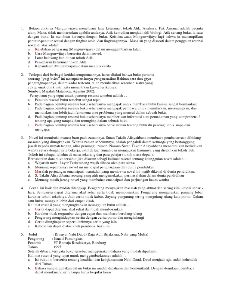 Contoh Soal Pilihan Ganda Bahasa Indonesia Materi Resensi Kelas 11