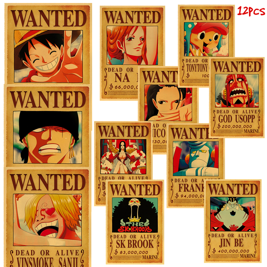 12pcs One Piece Wanted Poster Sabo Ace Luffy Zoro Sanji Hancock Poster Law Shanks Poster Home Decor Wall Sticker | Shopee Singapore