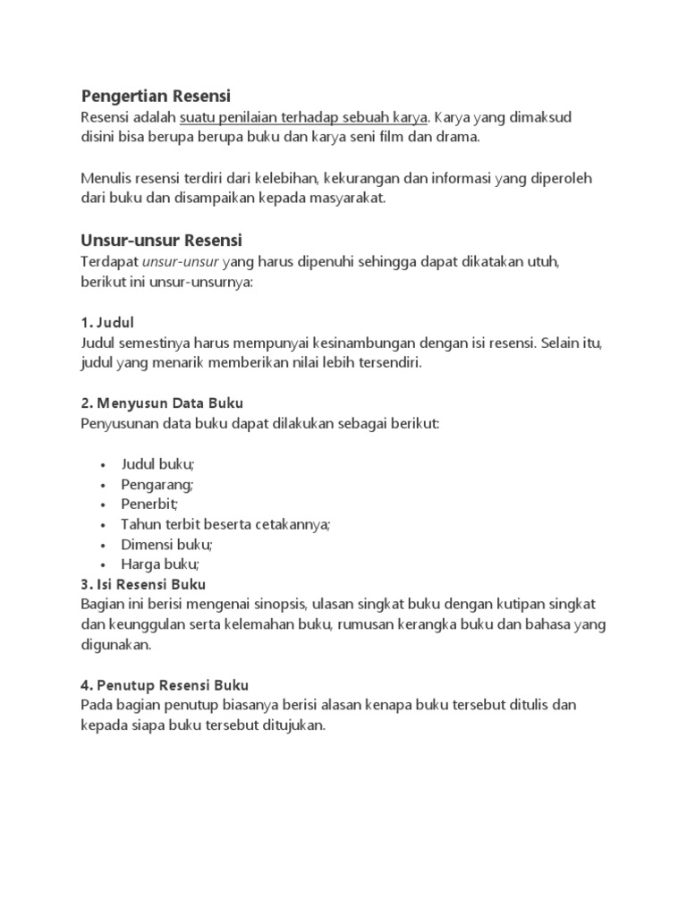 Resensi - Pengertian, Struktur, Unsur, Sistematika, Ciri, Jenis