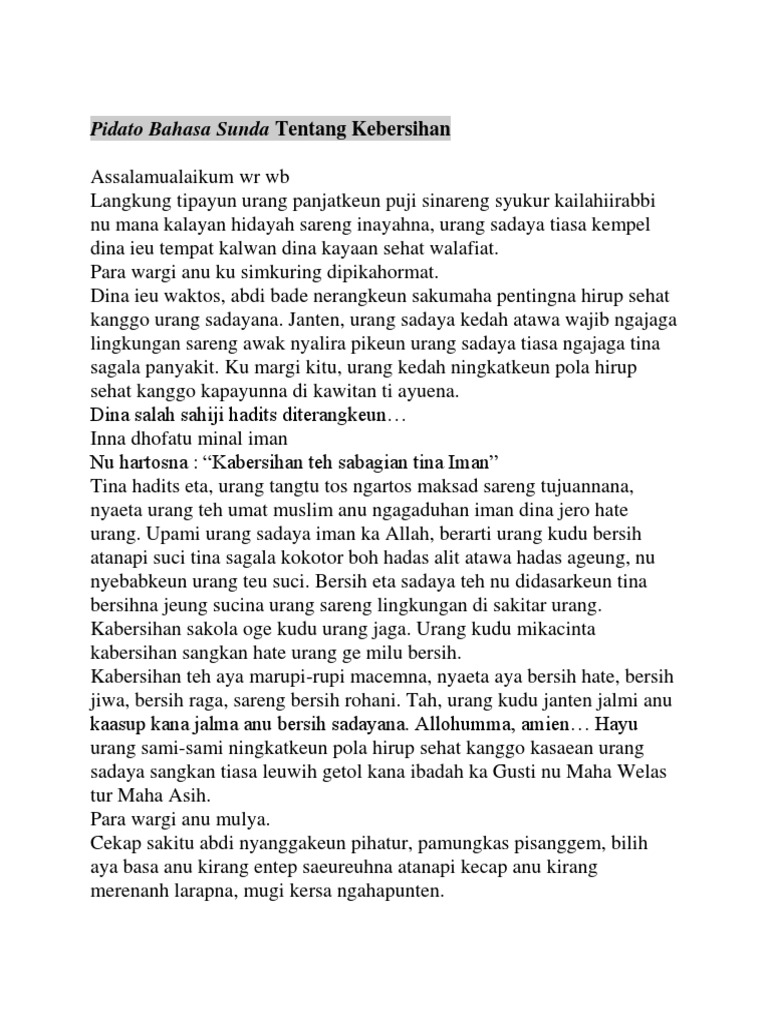 Contoh Naskah Pidato Bahasa Sunda Tentang Kebersihan - Contoh Naskah