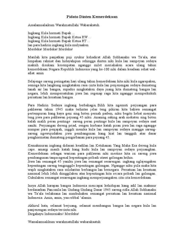 contoh soal shu: Contoh Pidato Bahasa Jawa Tentang Kemerdekaan Indonesia