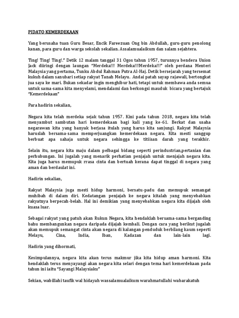 DOC) PIDATO HARI KEMERDEKAAN | Nurlinda Jusli - Academia.edu