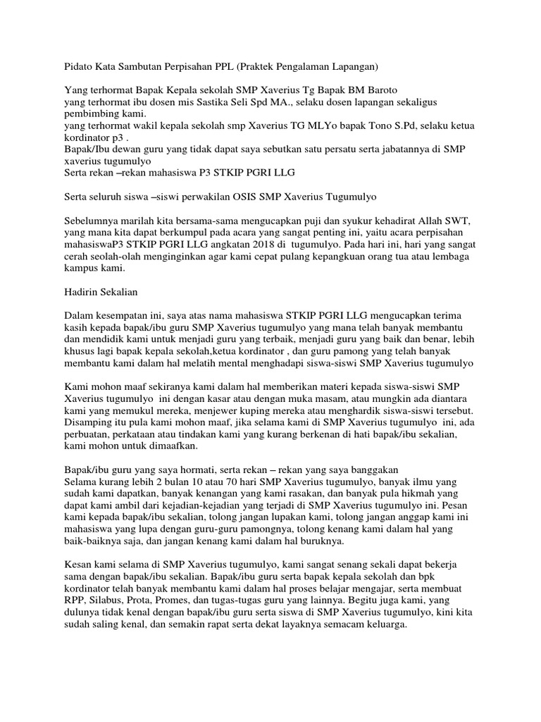 Contoh Kata Sambutan Untuk Perpisahan Ppl | Ilmu Pengetahuan Populer 3