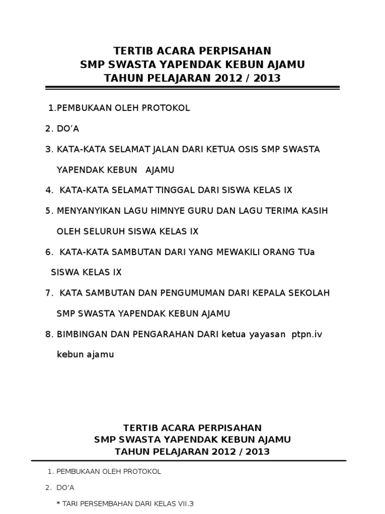 Contoh Susunan Acara Perpisahan Sd - Guru Galeri