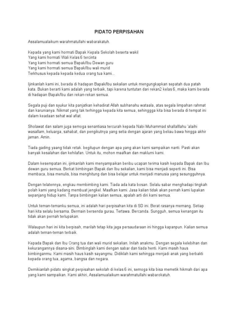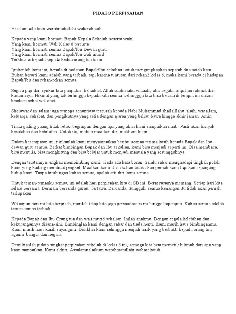 DOC) Contoh Pidato Perpisahan Kelas | Hendro Ndro - Academia.edu