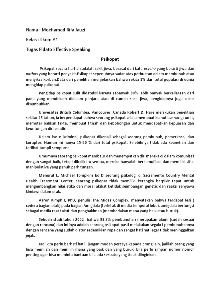 Nama: Moehamad Rifa fauzi Kelas: Ilkom A1 Tugas Pidato Effective Speaking