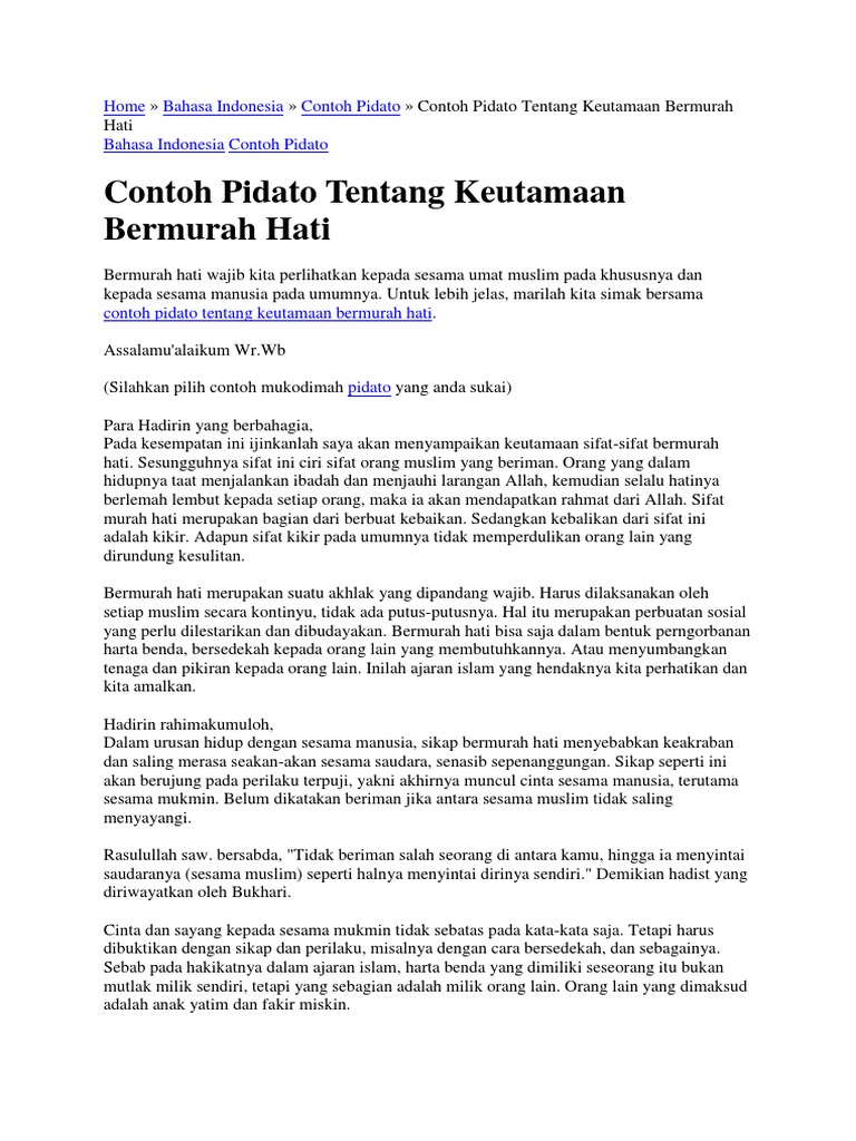 Contoh Pidato Tentang Keutamaan Bermurah Hati: Home Bahasa Indonesia Contoh Pidato Bahasa Indonesia Contoh Pidato