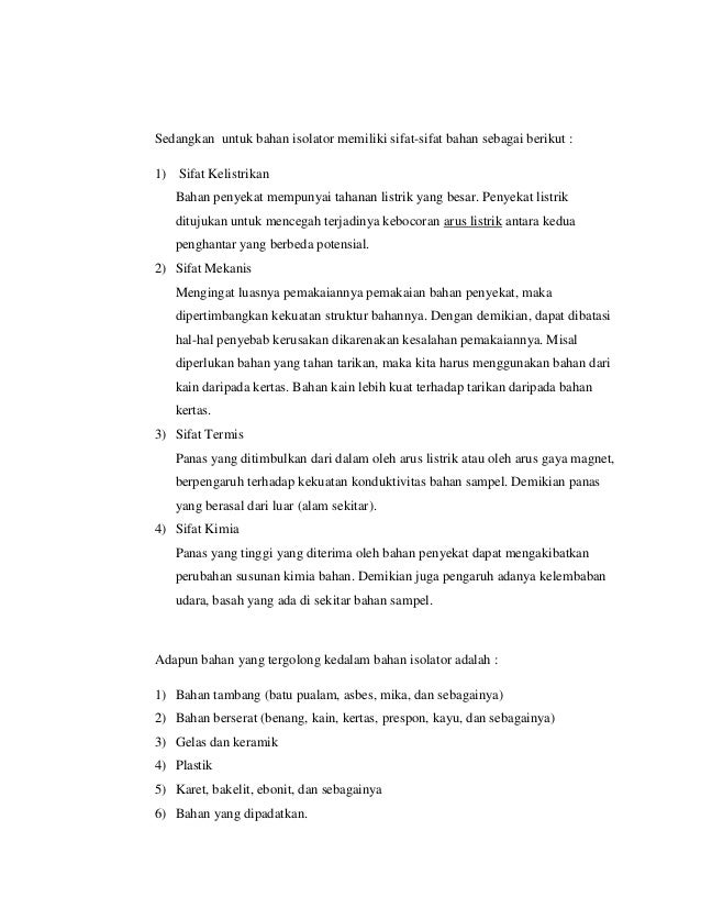 Bahan Isolasi Bahan Penyekat (Insulator/isolator) adalah bahan …