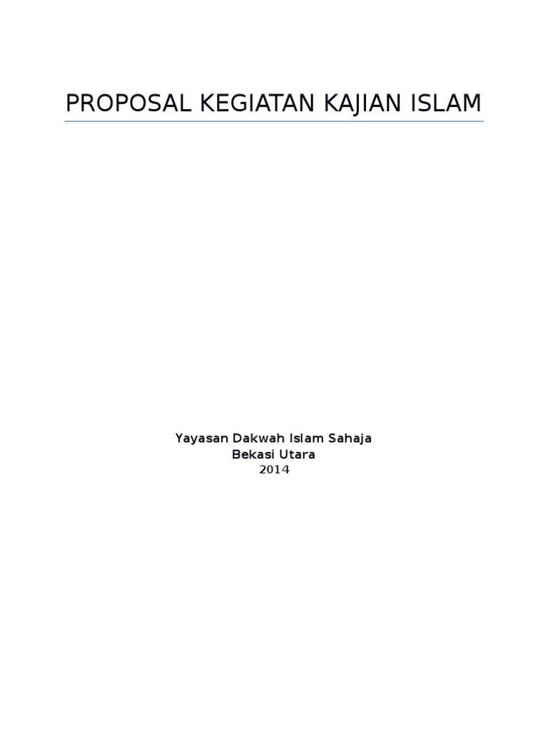 Proposal Kegiatan Kajian Islam: Yayasan Dakwah Islam Sahaja Bekasi Utara