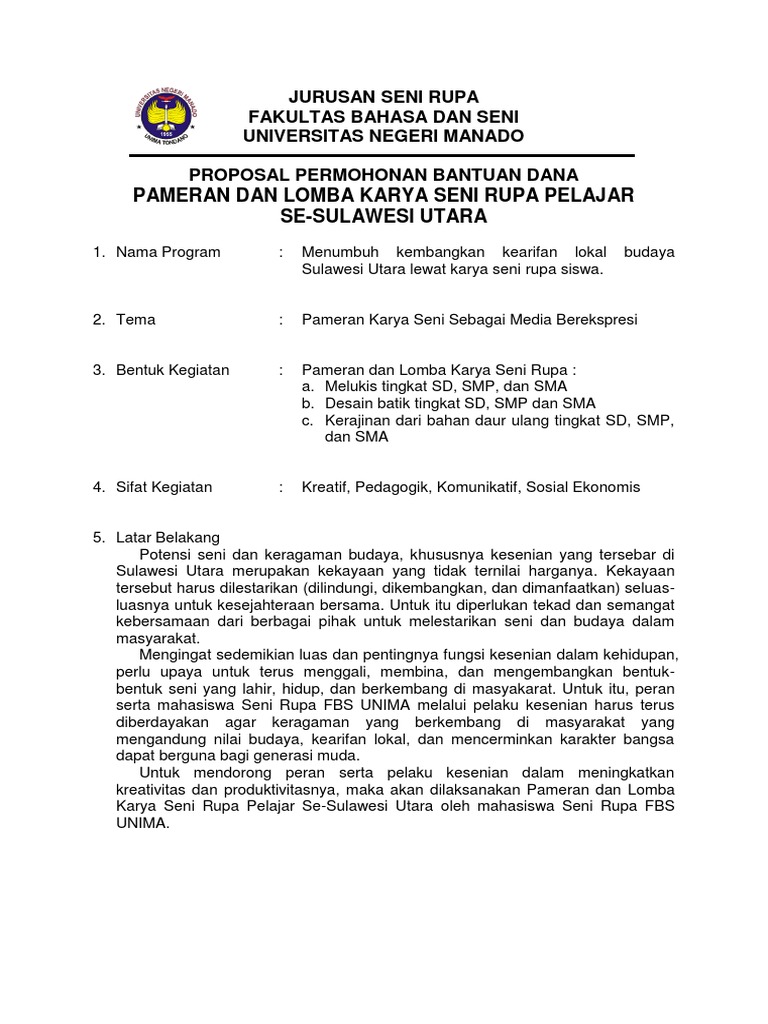 DOC) CONTOH PROPOSAL KEGIATAN PAMERAN SENI RUPA DI SEKOLAH.docx | Zakaria Ahmad - Academia.edu