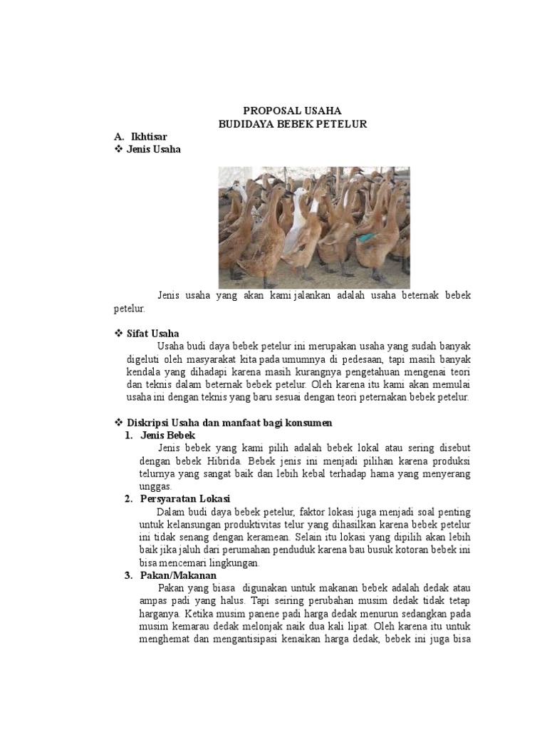 DOC) Contoh Proposal Peternakan Bebek | Waluyo Setyo - Academia.edu