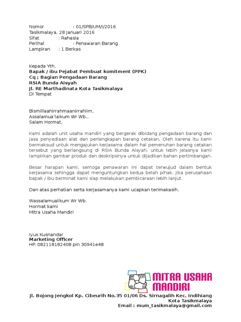 Contoh Surat Proposal Penawaran Barang Dan Kerjasama