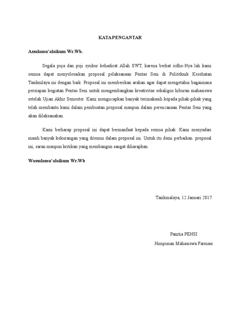 Contoh Kata Pengantar Proposal Pentas Seni - Berbagi Contoh Proposal