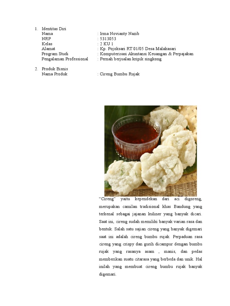 proposal wirausaha (cireng rujak) | hannysigojersey