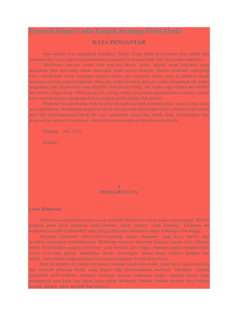Contoh Proposal kegiatan usaha keripik kentang pedas manis - InfoRilex