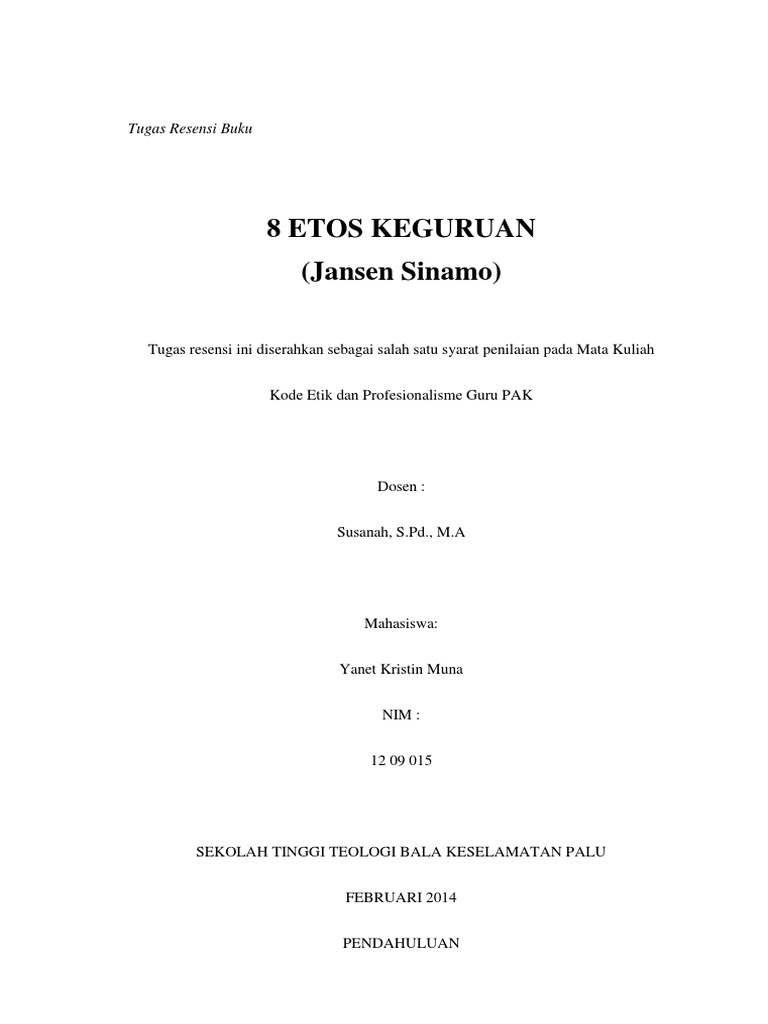 Resensi Buku 8 Etos Keguruan