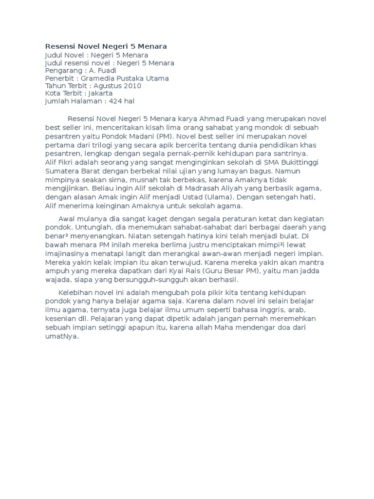 DOC) Resensi Novel Negeri 5 Menara Kategori : A | baseng bae - Academia.edu