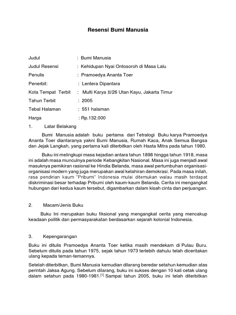 PDF) Resensi Novel Bumi Manusia.pdf | Bernadus Ade - Academia.edu