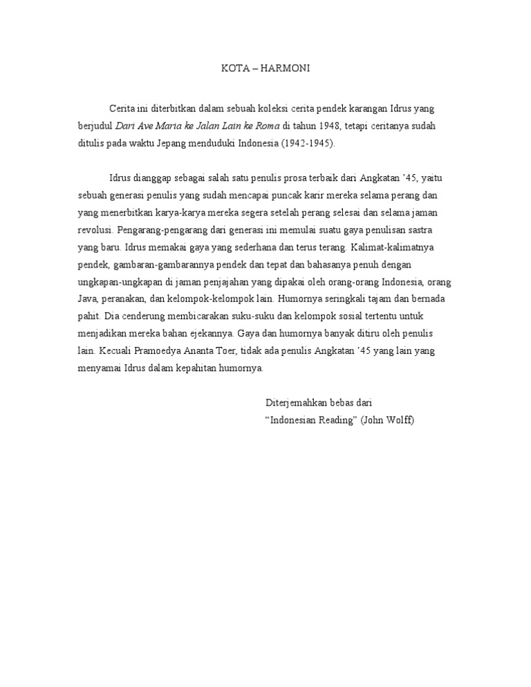 DOC) Dari Ave Maria ke Jalan Lain ke Roma Karya : Idrus | Anggitha Yohana - Academia.edu