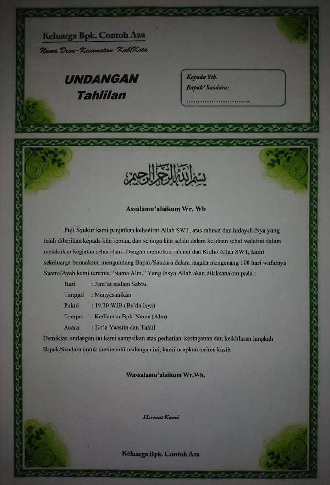 DOC) Contoh Surat Undangan Tahlil 40, 100, 1000 hari | Teja Sukmana - Academia.edu