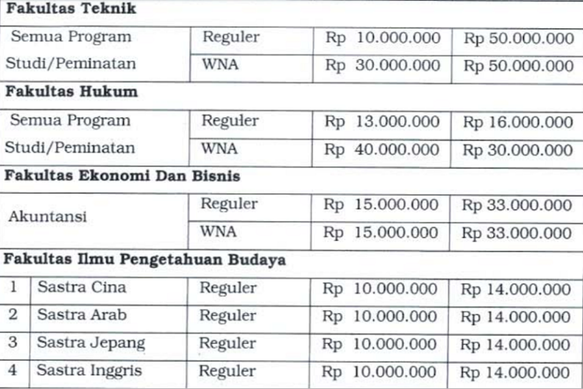 Biaya Kuliah UI - 2020/2021 - Populer.web.id