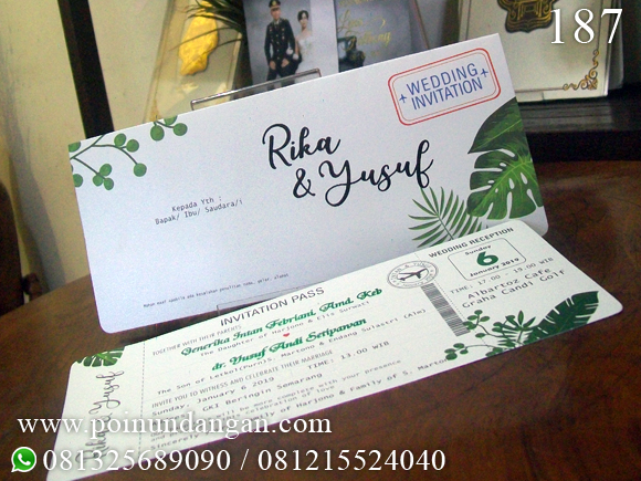 Undangan Rika Yusuf : Tiket pesawat boarding pass hijau daun Poin Undangan adalah jasa pembuat kartu undangan pernikahan, khitanan harga terjangkau beragam model hard cover, soft cover, kardus nasi, box roti, box