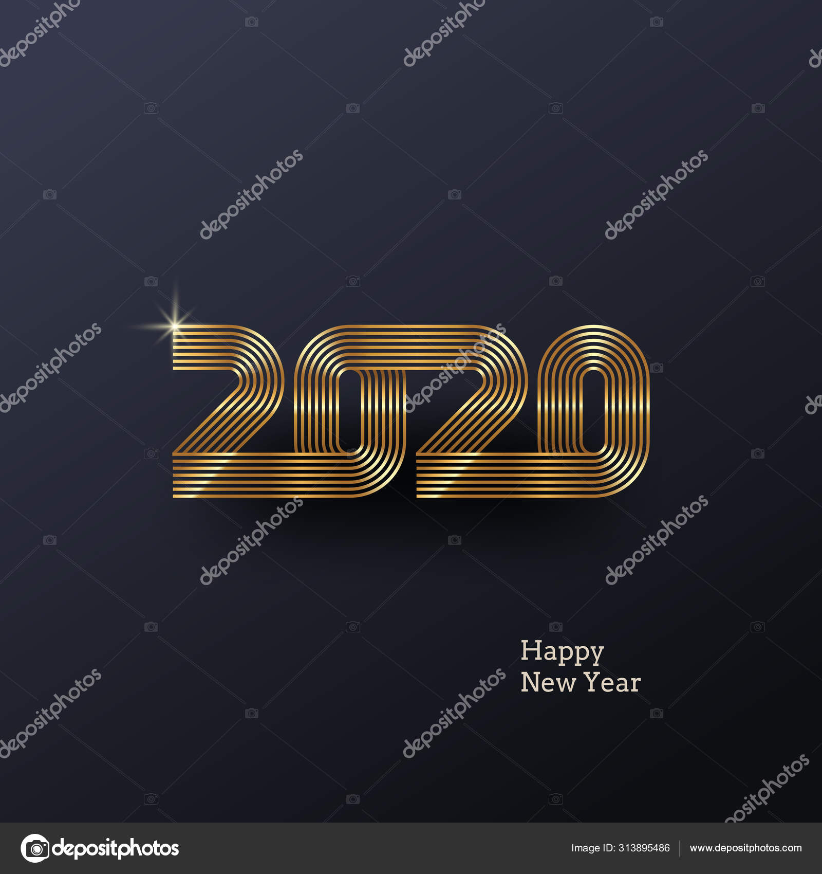 Tahun baru 2020 logo. Desain penyambutan dengan jumlah emas tahun. Desain untuk kartu ucapan, undangan, kalender, dll . Stok Vektor © S-E-R-G-O #313895486