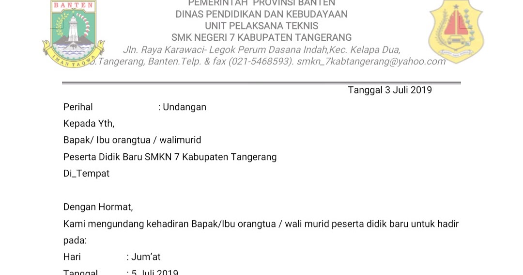 Undangan kepada bapak/Ibu orang tua/wali murid peserta didik baru SMKN 7 Kab. Tangerang