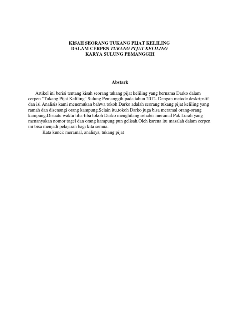 Bahasa Indonesia » Analisis cerpen tukang pijat keliling