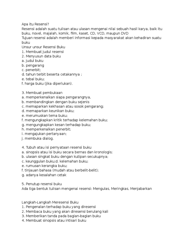 Bahasa indonesia unsur unsur resensi