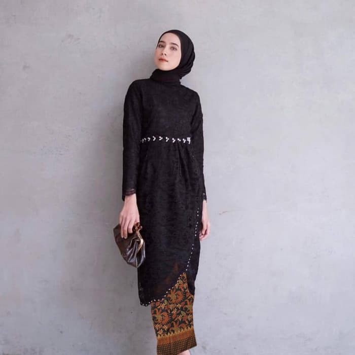 Agr363 setelan baju wisuda kebaya winda hitam undangan pesta rok daun at | Shopee Indonesia