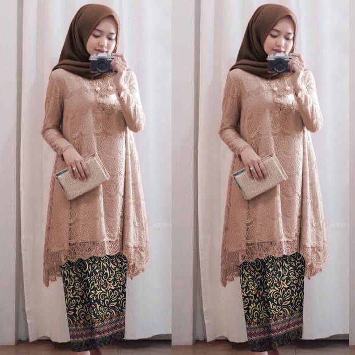setelan kebaya wisuda fitri mocca tunik brukat batik baju pesta st vt | Shopee Indonesia