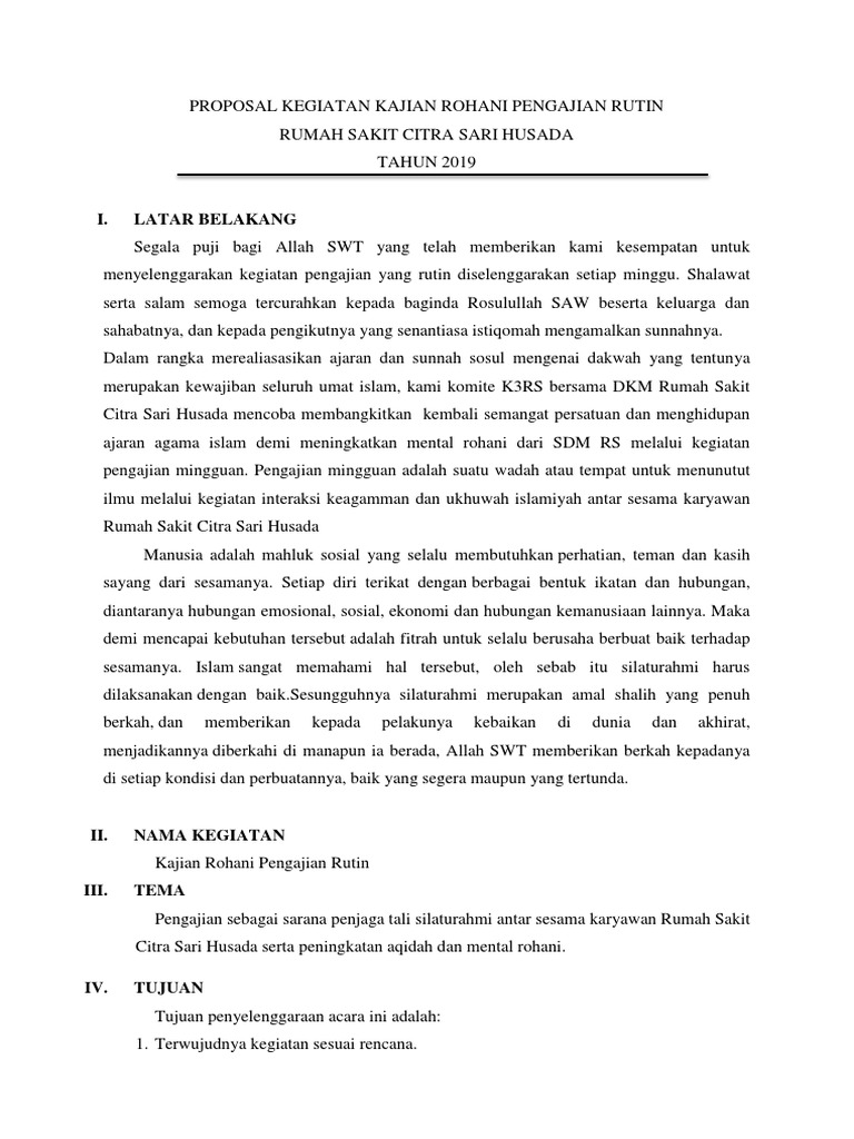 Proposal Kegiatan Kajian Rohani Pengajian Rutin