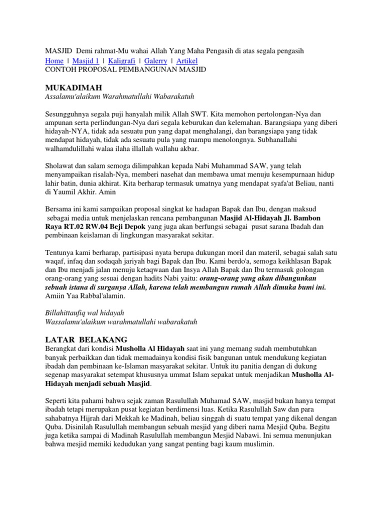 Contoh Proposal Bantuan Dana Pembangunan Masjid Pdf - Berbagi Contoh Proposal