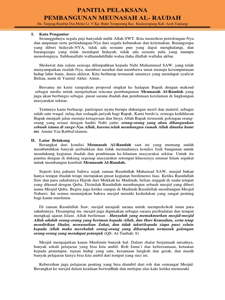 PROPOSAL PERMOHONAN BANTUAN PEMBANGUNAN MASJID BABUSSALAM - PDF Free Download