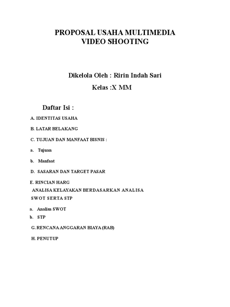 Contoh Proposal Usaha Jasa Video Shooting Di Desa - REVORMER.COM
