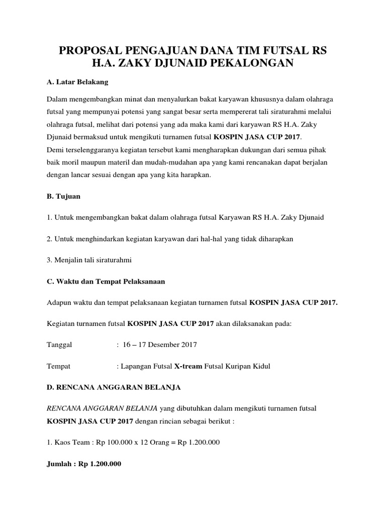 Contoh Proposal Pengajuan Dana Futsal Pdf