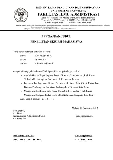 Format Pengajuan Judul Skripsi - Ide Judul Skripsi Universitas