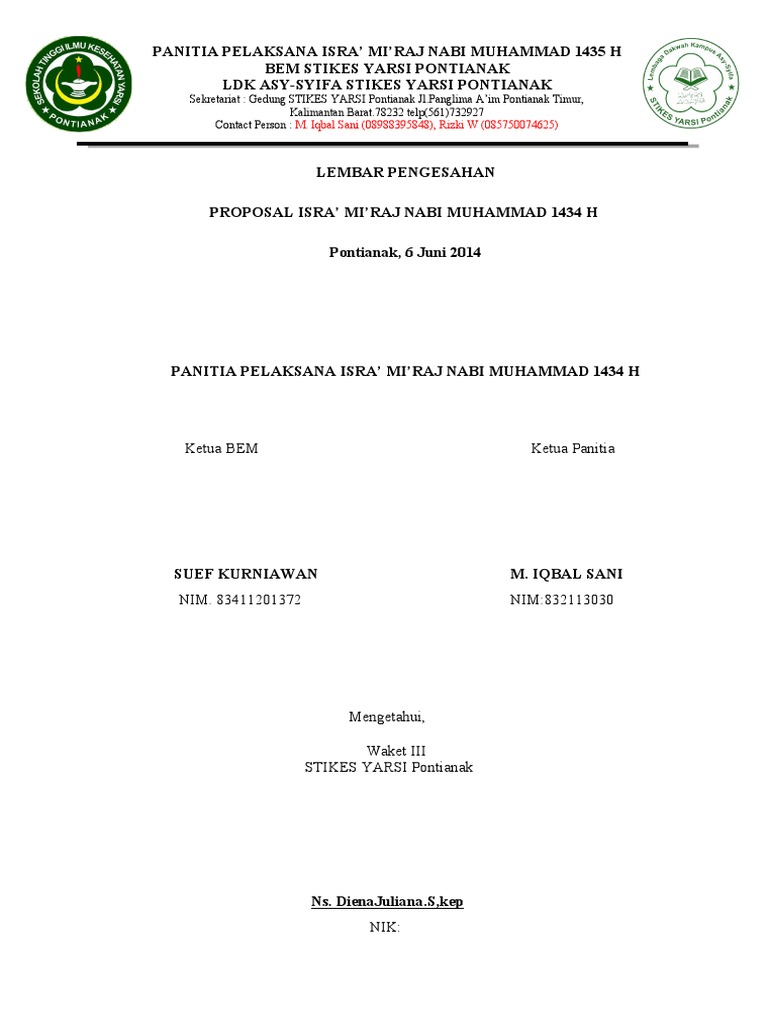 DOC) PROPOSAL KEGIATAN ISRA' MI’RAJ NABI MUHAMMAD SAW | Nurleni Firman - Academia.edu