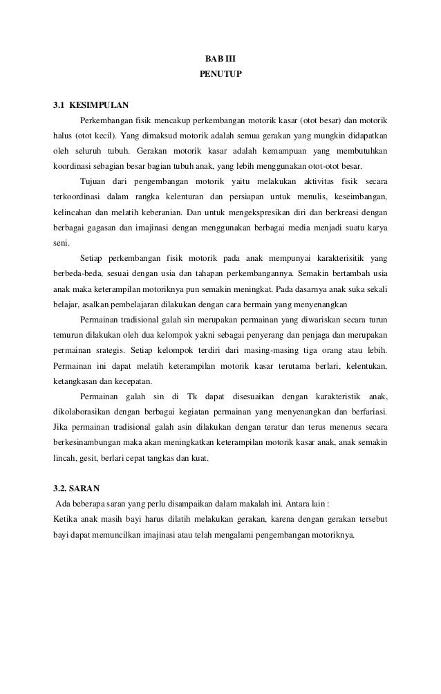 Contoh Proposal Ptk Paud Pengembangan Motorik Kasar - Temukan Contoh
