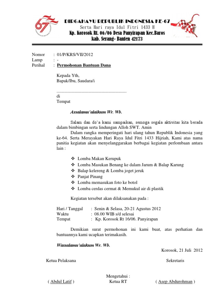 DOC) Contoh Surat Edaran Meminta Sumbangan untuk Acara HUT RI | heri sumanto - Academia.edu