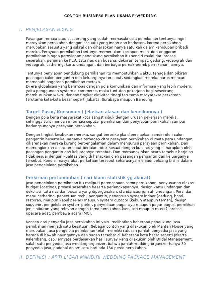 Contoh Business Plan - Usaha E-Wedding