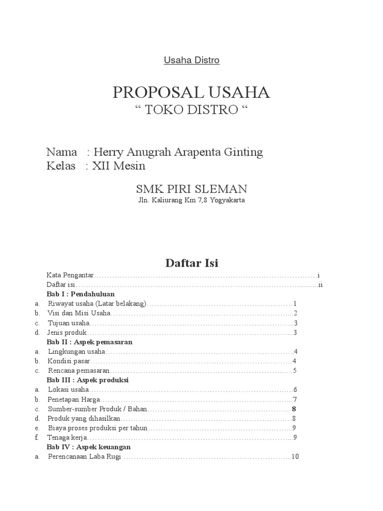 DOC) CONTOH PROPOSAL USAHA BUTIK | Slamet Riyadi - Academia.edu