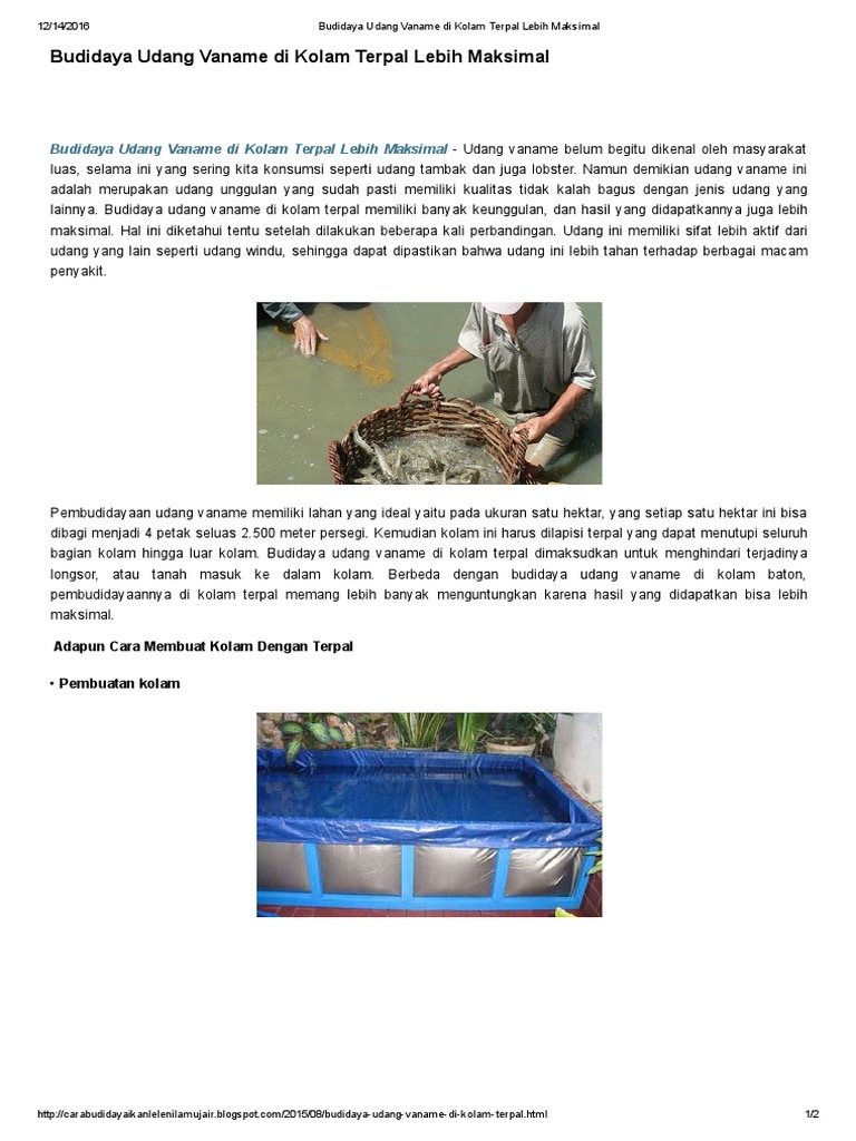 Budidaya Udang Vaname Di Kolam Terpal Pdf - InfoAkuakultur.com