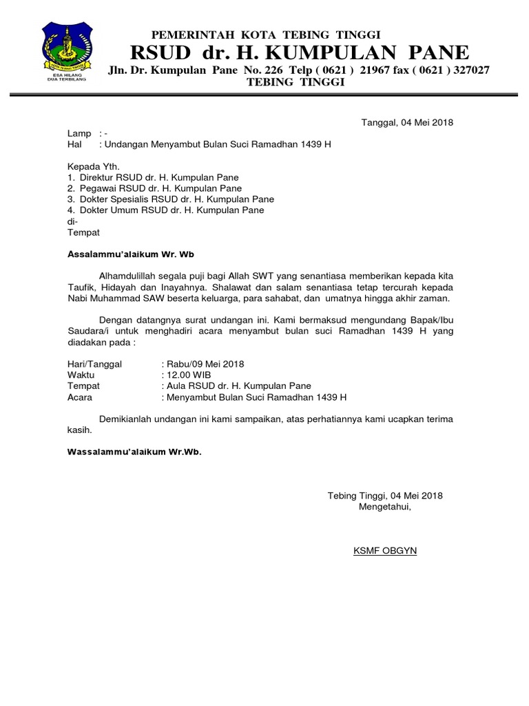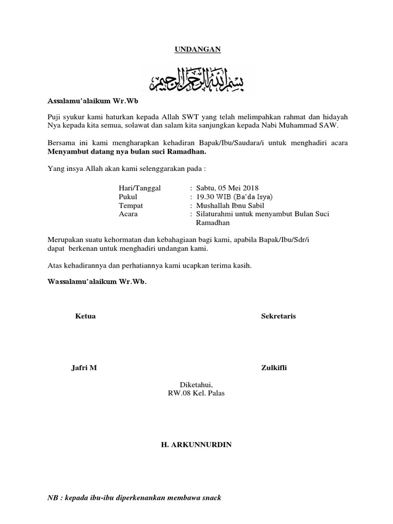Contoh Surat Undangan Menyambut Bulan Suci Ramadhan - Berbagi Contoh Surat