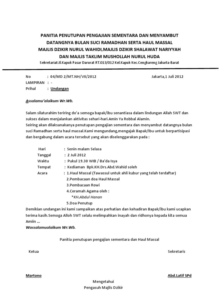 Contoh Surat Undangan Ruwahan | Microsoft office word, Microsoft word 2010, Microsoft word 2007