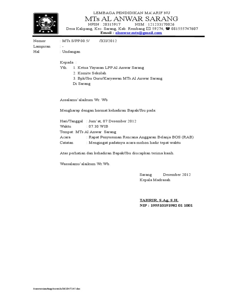 DOC) Surat undangan rapat RT | ahmad firdaus - Academia.edu