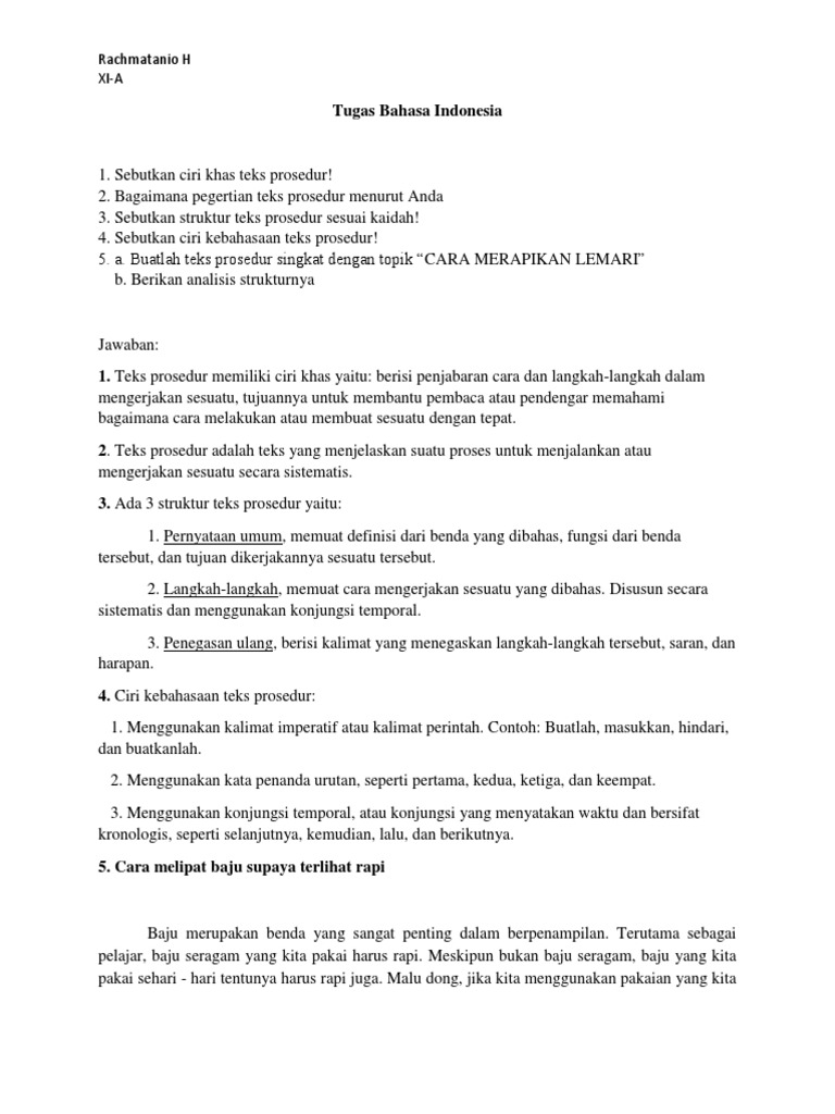 DOC) PEMBAHASAN ANALISIS TEKS PROSEDURAL.docx | Anita Resita - Academia.edu