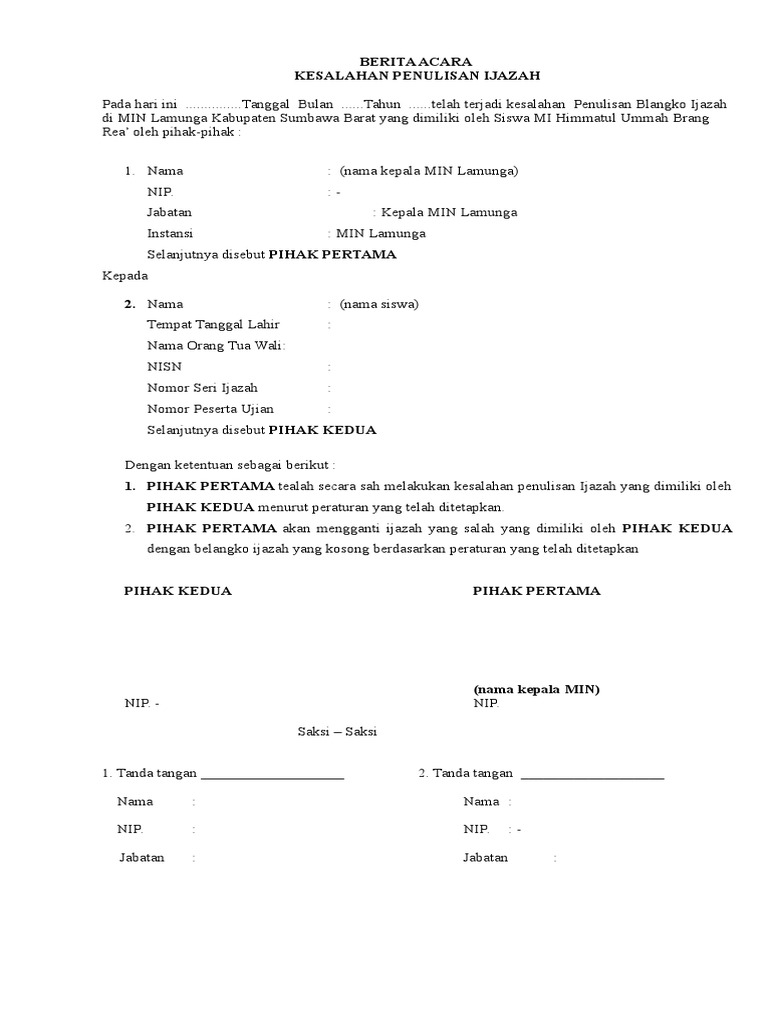 Contoh Berita Acara Kesalahan Penulisan Ijazah